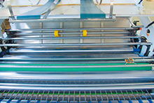 上下層底紙輸送均采用伺服電機(jī)與高強(qiáng)真空吸附相結(jié)合,確保瓦楞紙輸送精、準(zhǔn)、快。